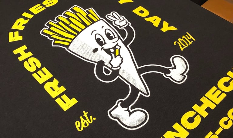 Sérigraphie sur textile clair ou foncé, de 1 à 3 couleurs. Idéal pour les marques, les artistes et les entreprises ou associations.